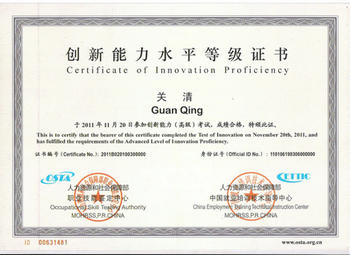 《创新能力》测评项目在参照国际上人才测评惯例和标准的基础上,结合我国目前用人单位对创新型人才的要求和迫切需要,以“激发创新意识、训练创新方法和增强创新能力”等基础性课程为核心,形成的集培训、考试、鉴定、取证等一套整标准化的培训资源和考核认证程序。创新能力培训是能够把大家耳熟能详的“创新”二字从理念应用到实践的针对个人能力的测评项目。所谓“创新能力”是一门建立在集哲学、心理学、社会学、逻辑学、市场营销学、经济学、教育学、管理科学与技术和创造学等多门学科之大乘的交叉学科;施教的目的旨在通过长期或短期教育,培训提高受教者思辨能力。使学者通过培训突破固有的思维定式,灵活运用各种思维方法,将“创新”渗透到每个细小的活动中。将创新性思维变成一种习惯,从而应用到生活、工作、学习和社会活动中的各个领域。调查显示:目前,创新能力培训体系已在部分地区进行了试点,全国70所大专院校和中专、中技学校近11万人参加了培训。在北京等先期试点的省市,凡接受培训后参加测评考试并取得了人力资源和社会保障部颁发的创新能力证书的学生和各类社会从业人员,其择业、就业、创业的竞争力平均提高了44%,且获得机会的能力和取得突出成效的能力都比同等条件的人员有显著的提高。