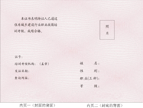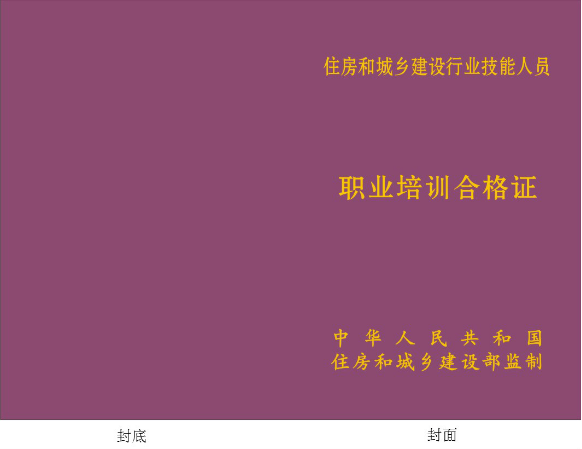 住房城乡建设行业技能人员职业培训合格证(以下简称职业培训合格证)由封面、封底和内页组成,主要内容包括:证书名称、监制单位、持有人基本信息、培训的职业(工种)及等级、证号、培训考核机构名称及印章、发证日期、查询网址、证书说明等(详见图1、图2)。
