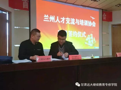 甘肃人大远程培训学校与思普瑞互联网学院兰州学习中心,兰州卓越教育,甘肃言灵口才学校等8家机构成功签约。