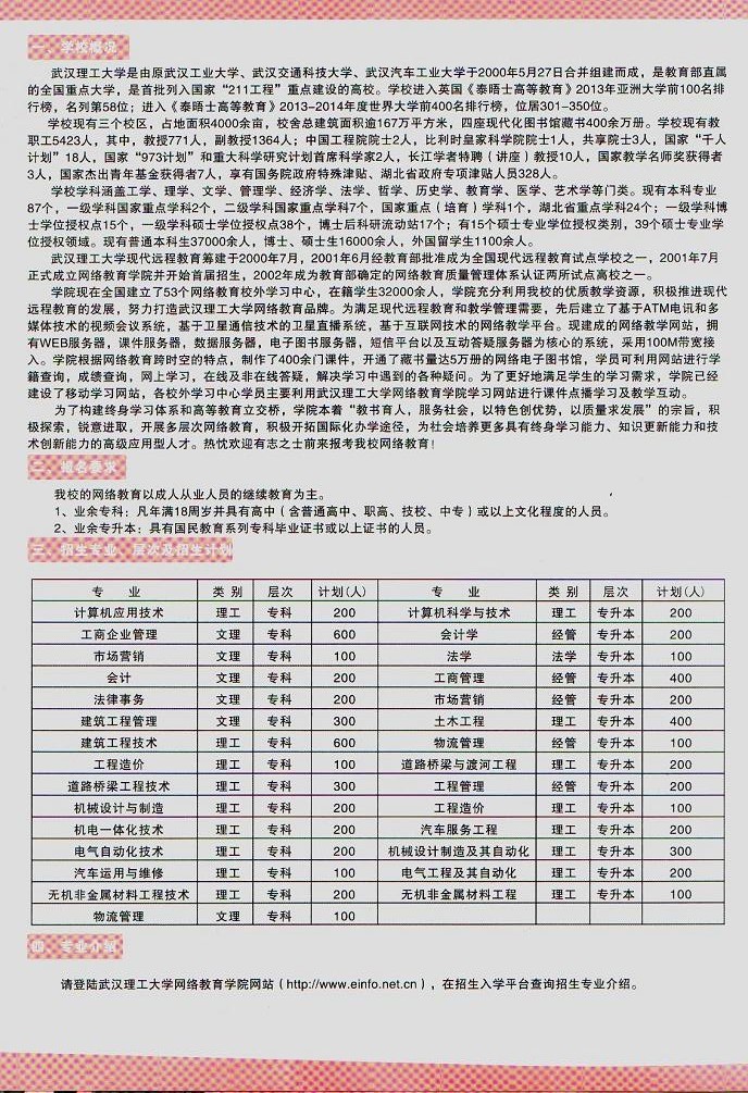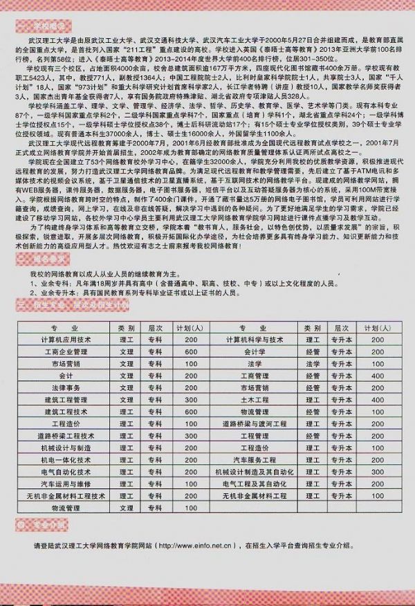 武汉理工大学网络教育招生简章
