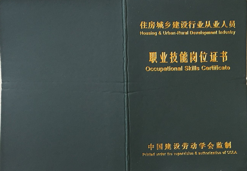 中国建设劳动学会监制证书
