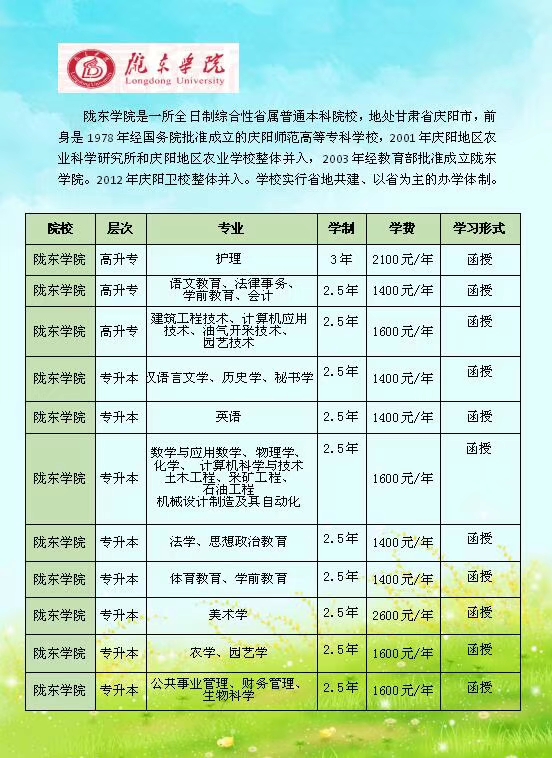 陇东学院成考招生简章