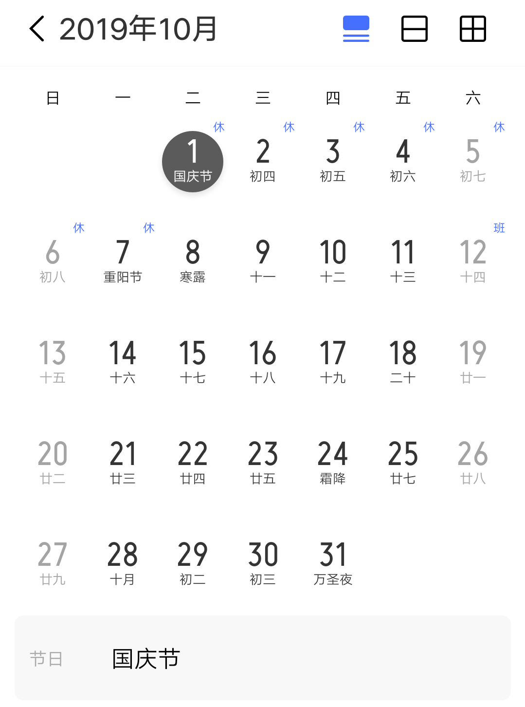 注:9月29日(星期日)、10月12日(星期六)正常上班