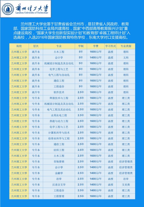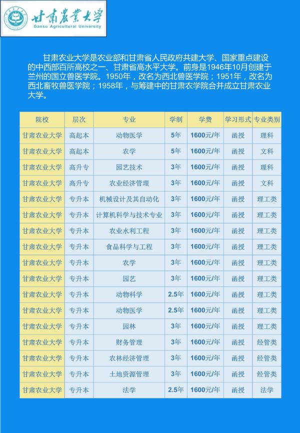 关于2020年甘肃省成人高等教育招生简章
