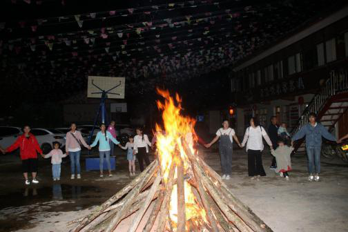 之后,大家去了牛头寺,牛头寺,原名任头山。据传,唐代有一农家耕牛失圈,连日来四处寻觅无踪无影,后来在悬崖绝壁的任头山顶峰找见这头母牛,并产一牛犊,被人们传为神牛。于是便在这峰顶之上建起由前殿、后殿、中殿、叁门、伙房组成的寺庙,更名为牛头寺。牛头寺历千载岁月,经百代沧桑,几多峥嵘,几多辉煌。参观完牛头寺,大家去了大草坡农家乐,刘爱芳董事长给大家安排了丰盛的晚餐以及篝火晚会,篝火晚会不仅让大家放松心情,缓解压力还可以将大家的热情推至最高点,在篝火氛围的渲染下,大家唱歌跳舞,放松身心,高兴极了。增进了大家的感情。