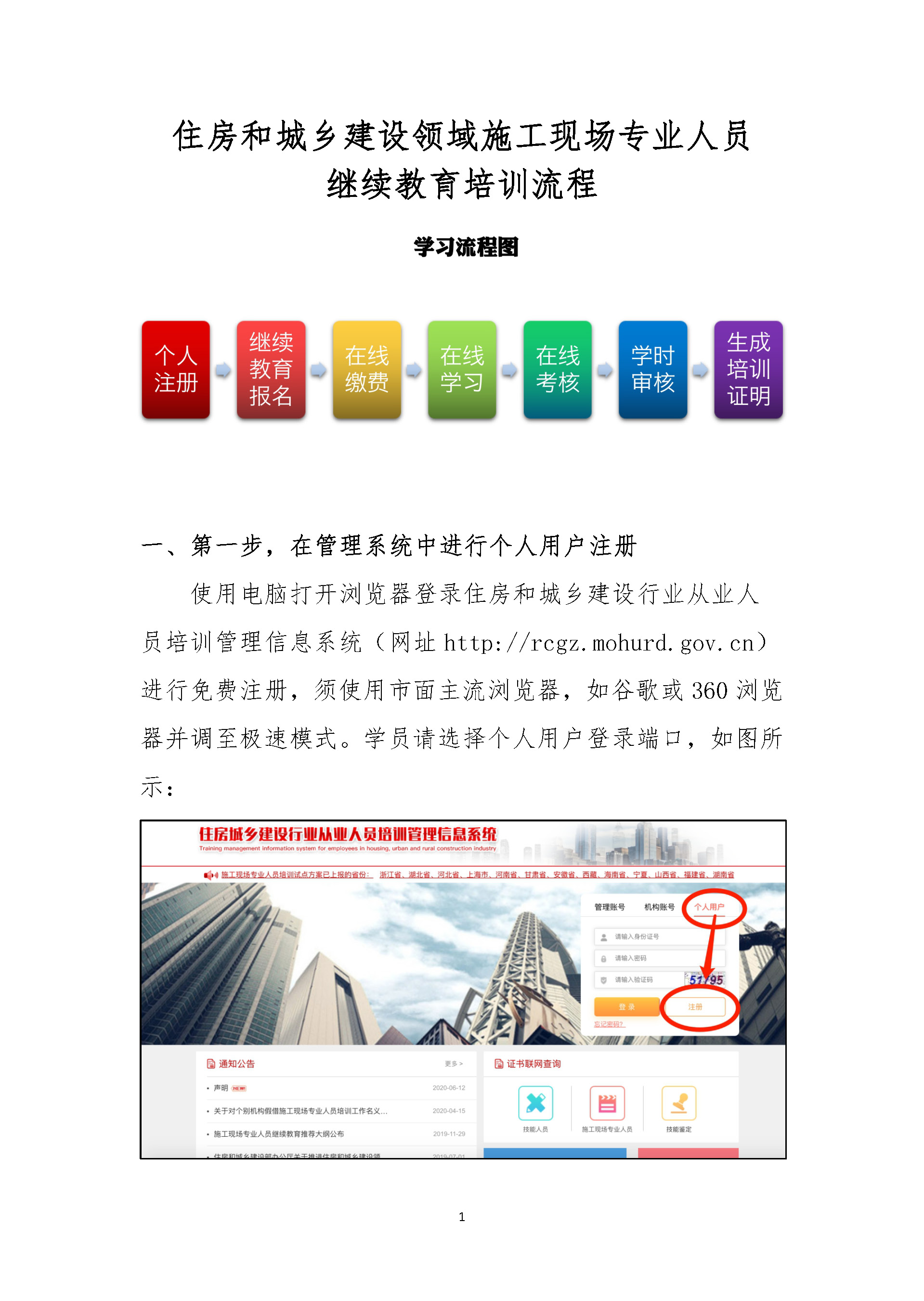住房和城乡建设领域施工现场专业人员继续教育培训流程