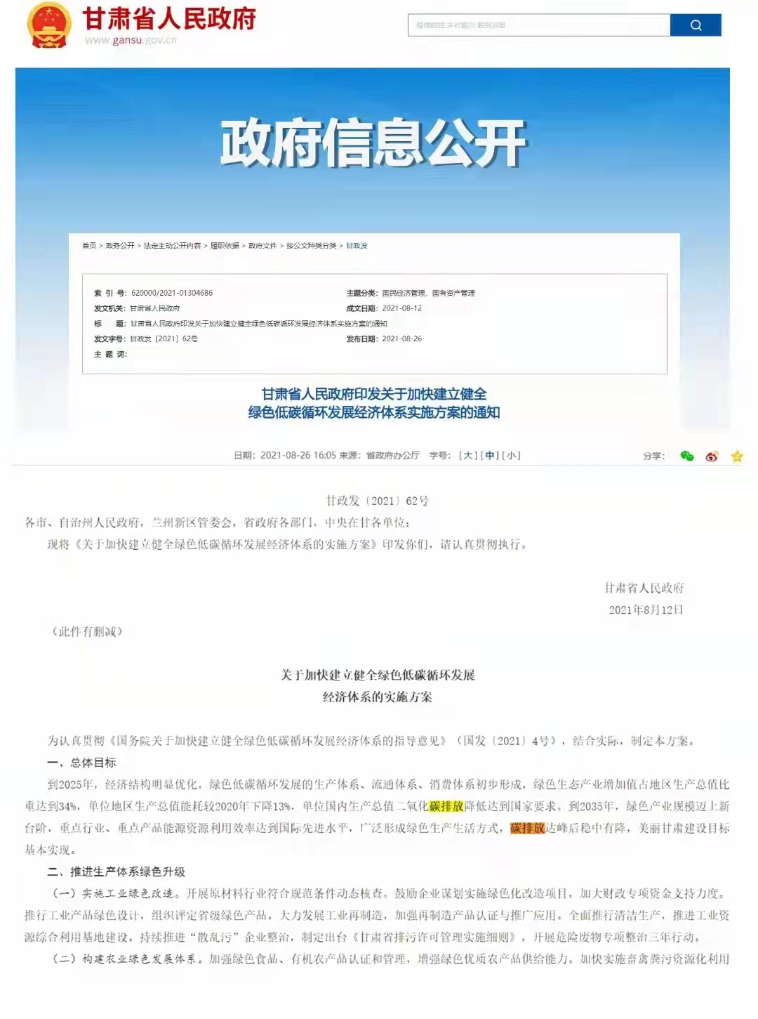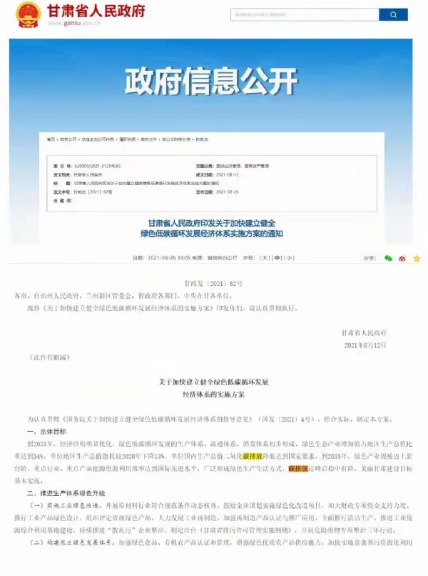 为认真贯彻《国务院关于加速建立健全绿色低碳循环发展经济体系的指导意见》(国发【2021】4号),结合实际,制定了关于加快建立健全绿色低碳循环发展经济体系的实施方案。