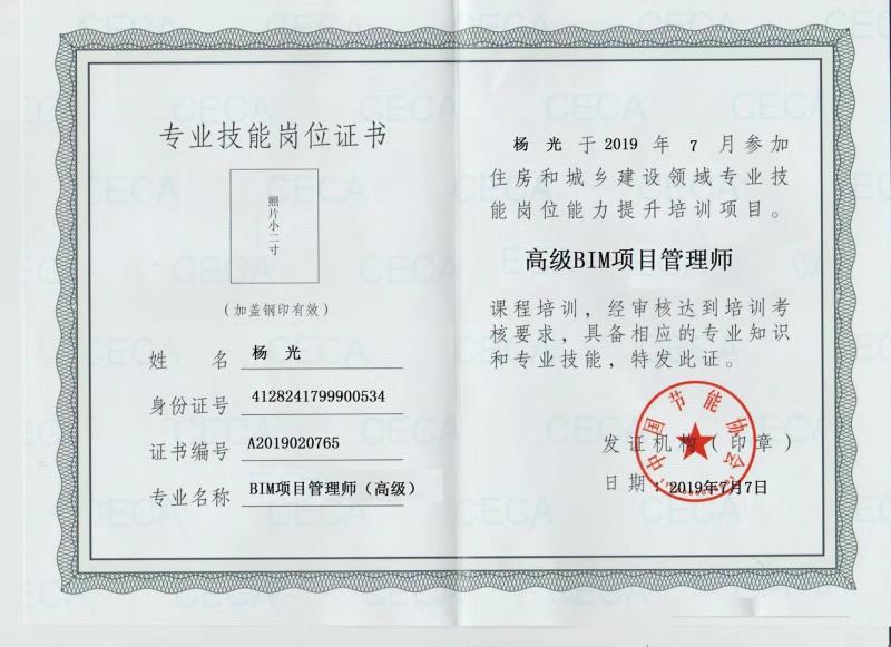 高级BIM项目管理师证书