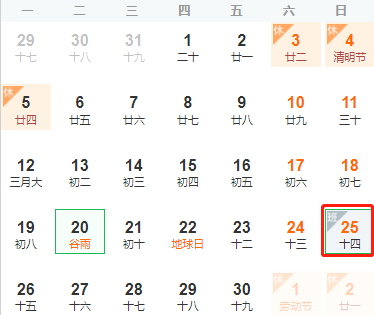 注:4月24日(星期六)全体休息,4月25日(星期日)正常上班。