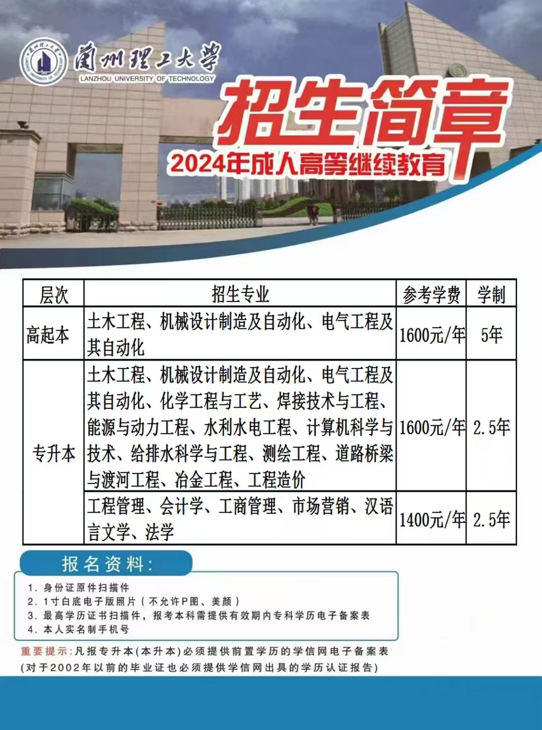 兰州理工大学高等学历继续教育始于1983年成立的干部培训中心,1993年成立成人教育学院,2003年更名为继续教育学院。兰州理工大学的各类成人教育归口继续教育学院管理。